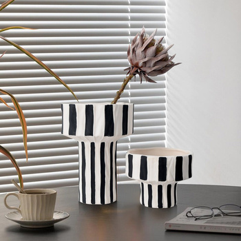 Jarrón de Cerámica Moderno para Decoración del Hogar, Diseño Artístico Vintage Nórdico en Blanco y Negro, Decoración de Mesa de Porcelana para Interiores y Adornos de Jardín